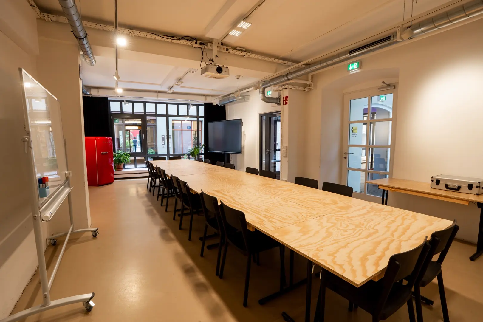 Ausstattung: Beamer, Whiteboard, Flipchart, Stühle, Tische, Garderobe, Interaktiver Screen